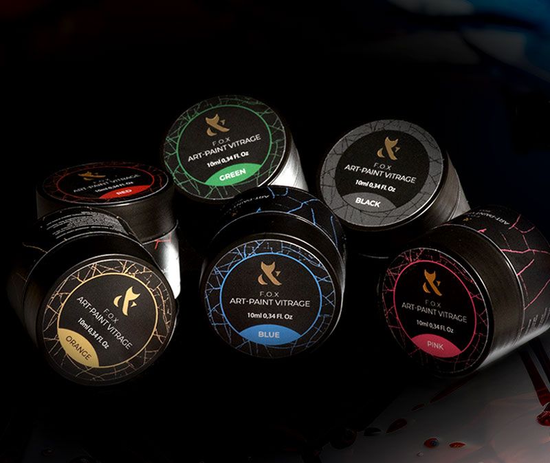F.O.X  Vitrage Gel paint са 2 в 1 цветни полупрозрачни гелови бои. Могат да се използват като гел лак за пълно покритие или за създаване на дизайни и рисуване. Цветовете лесно се смесват един с друг, създавайки нови нюанси. Могат да се покриват всякакви гел лакове. Благодарение на прозрачността могат да се създават допълнителни цветове. Имат лепкав слой.